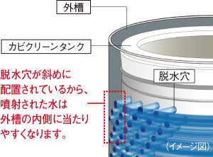脱水時の高速回転による噴射を利用して、外槽の内側を洗浄。洗剤カスの付着を抑えます。