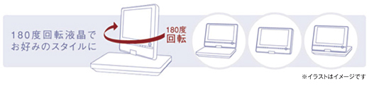 リクライニングしながら映像を楽しみたいときは、液晶パネルを180度回転させれば画面が手前に近付いてさらに迫力アップ。クルマの中なら画面をたたんで、手に持って。コンパクトでありながらも迫力のある高画質な映像が楽しめる9V型液晶画面を、その時々に最適なスタイルで楽しめます。