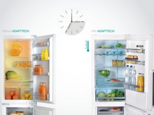 メモリ機能付きセンサー制御AdaptTech冷却システム搭載。電子基盤が、冷蔵庫のドアが開かれた回数を記憶しドアの開閉が多いタイミングに応じて冷却を調節します。例えば、頻繁に18時間と19時間の間で開閉することを検出すると、自動的にこの期間中に冷却能力を増大させます。