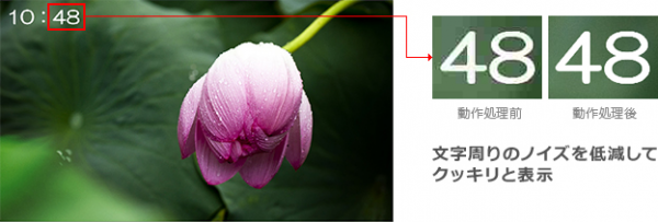 デジタル放送の中で目立ちやすいブロックノイズやモスキートノイズを低減。デジタル映像のエッジ部・平坦部の詳細な特徴を検出し、隣接する平坦部のノイズを除去するだけでなく、デジタル放送のノイズパターンに合った処理を実施することで、より効果的にノイズを低減します。