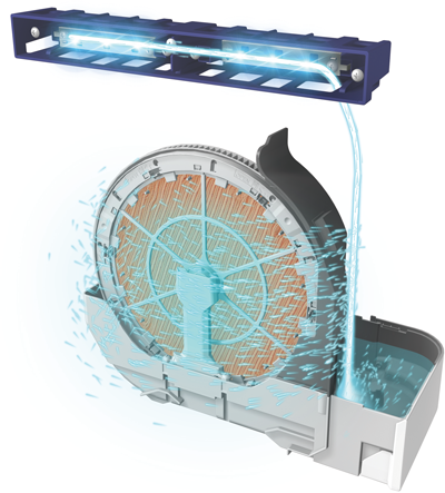 従来機に比べ、2倍のストリーマユニットを搭載。さらに、フィルターに効率よく照射される構造設計にしています。