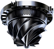 インペラーは、非対称に並んだ羽根をもち、それぞれの羽根には空気圧の高低から起こる摩擦を減らすために細かい穴が空いています。